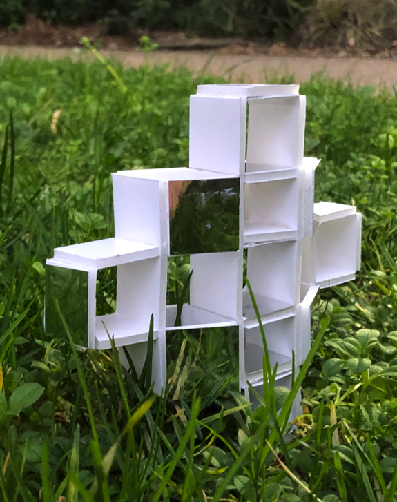 This is one of my model making for my final pieces, I used foam board to construct this model, it made out of the cube shape and each cube has two open sides for the use of a viewer, I used mirror board as a mirror. This model is able to expend and stink allow the side, by a simple push.